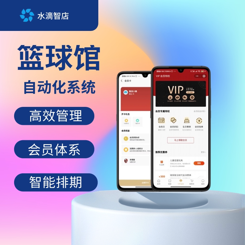 水滴智店篮球馆管理平台 提供会员卡办理服务 场地预约 扣次消费刷卡功能